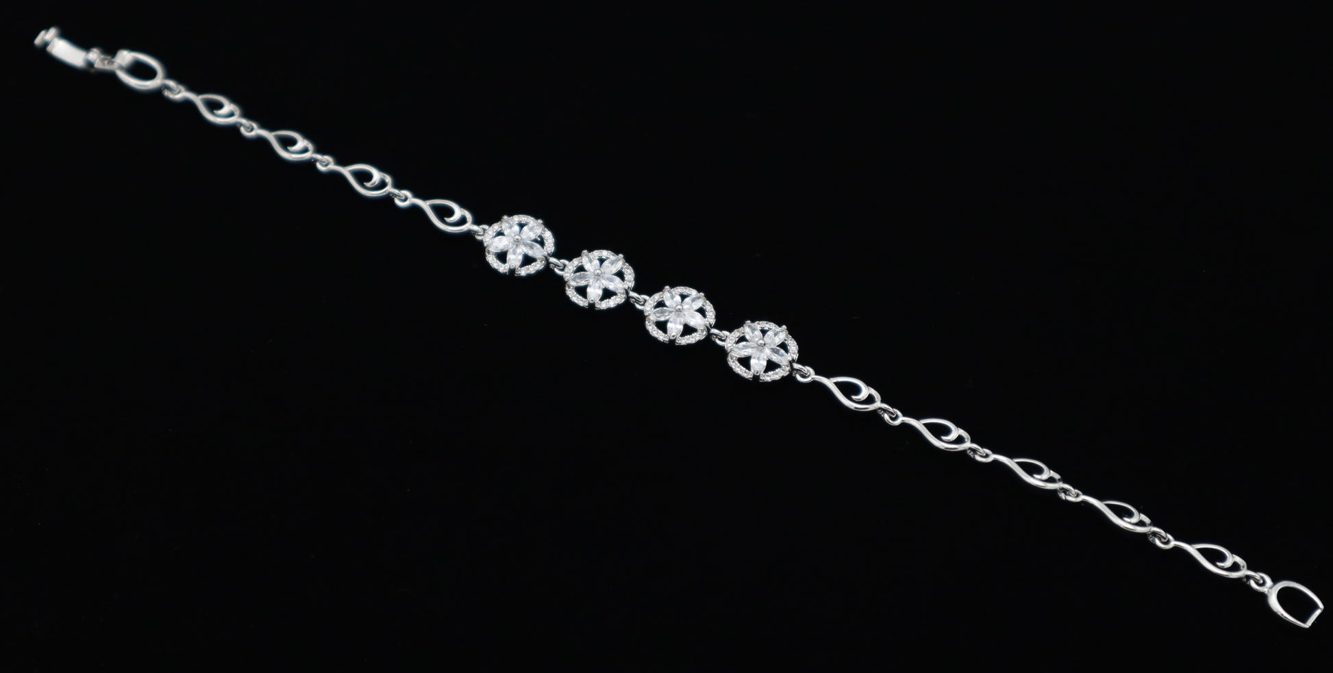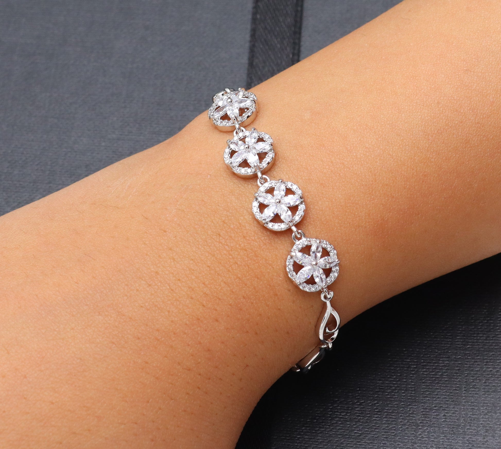 - Design: The openwork floral motif is embedded with brilliant zircon stones, forming a dazzling symmetrical pattern that enhances the bracelet’s luxurious appeal.